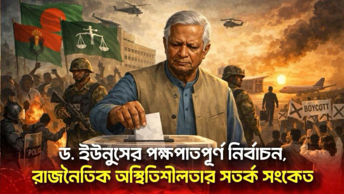 ড. ইউনুস যে নির্বাচনের আয়োজন করতে যাচ্ছেন, তা পক্ষপাতমূলক ও প্রতিহিংসামূলক । আওয়ামী লীগসহ মুক্তিযুদ্দের পক্ষের দলগুলোকে বাদ দিয়ে এই নির্বাচন আয়োজন করা হচ্ছে যা দেশীয় ও আন্তর্জাতিকভাবে সমালোচনার জন্ম দিয়েছে।