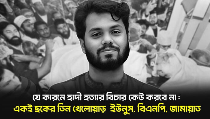 এখন প্রশ্ন হলো, কে চাইত হাদী সরে যাক? আওয়ামী লীগের? একই ঘরানার আরেকজনকে তৈরীর সুযোগ করে দেয়ার মতো ভুল তারা কখনোই করবে না। বিএনপির? তাহলে তো তারা পাটোয়ারীর মতো তুলনামূলক দুর্বল প্রার্থীকে নিরাপদে রাখত না, বরং মীর্জা আব্বাসকে জিতিয়ে দিতই। মীর্জা আব্বাসের মতো হেভিওয়েট প্রার্থীর বিপরীতে পাটোয়ারীকে দাঁড় করানোটা নিজেই একটা রাজনৈতিক ধোঁয়াশা।