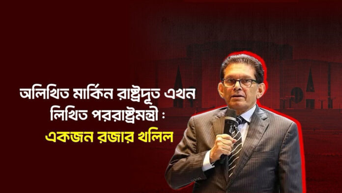 রজার খলিলকে পররাষ্ট্রমন্ত্রী বানানোর মধ্য দিয়ে বাংলাদেশের সার্বভৌমত্ব এখন কেবল কাগজে-কলমে টিকে আছে। একজন মার্কিন নাগরিককে দেশের পররাষ্ট্র নীতি নির্ধারণের দায়িত্ব দেওয়া মানে হচ্ছে ওয়াশিংটনের হাতে সরাসরি চাবি তুলে দেওয়া। বিএনপি যে মানুষটির পদত্যাগ চেয়ে একসময় রাজপথে মিছিল করেছিল, তাকেই এখন তারা মন্ত্রিসভায় বসাচ্ছে। এই পট পরিবর্তনের কারণ একটাই, তারেক রহমানের জন্য মার্কিন ভিসা নিষেধাজ্ঞা তুলে নেওয়ার ব্যবস্থা রজার খলিল করে দিয়েছেন।