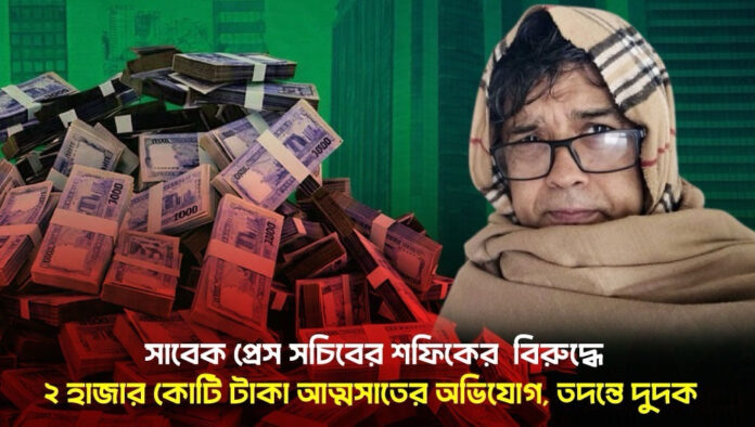 সদ্য বিলুপ্ত অন্তর্বর্তী সরকারের প্রধান উপদেষ্টার সাবেক প্রেস সচিব শফিকুল আলমের বিরুদ্ধে দুর্নীতি, চাঁদাবাজি ও ক্ষমতার অপব্যবহারের গুরুতর অভিযোগ উঠেছে। প্রভাব খাটিয়ে ভাইয়ের মাধ্যমে নারায়ণগঞ্জ সিটি করপোরেশন থেকে প্রায় দুই হাজার কোটি টাকা আত্মসাতের অভিযোগে তাঁর বিরুদ্ধে অনুসন্ধান শুরু করেছে দুর্নীতি দমন কমিশন (দুদক)।