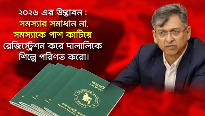 পাসপোর্ট অফিসে এখন সরকারি দালাল বসবে। এটা সরকারের সিদ্ধান্ত, লুকোচুরি নেই। স্বরাষ্ট্রমন্ত্রী সালাহউদ্দিন আহমদ নিজেই বললেন, দলিল লেখকের মতো পাসপোর্ট অফিসেও নিবন্ধিত লোক থাকবে, তারা সার্ভিস চার্জ নিয়ে কাজ করে দেবে। চমৎকার। দেশের মানুষ এতদিন যে দালালদের গালি দিয়ে আসছিল, এখন সেই দালালিটাকেই সরকারি স্বীকৃতি দেওয়া হচ্ছে। পার্থক্য শুধু এটুকুই, এখন দালালের গায়ে সরকারি ব্যাজ লাগানো থাকবে।