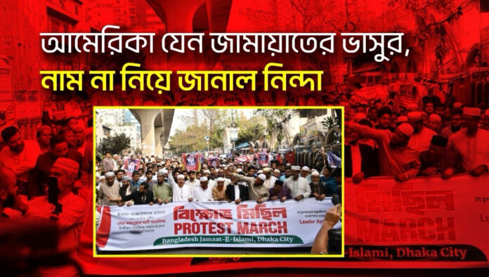 সার্বিকভাবে বর্তমান এই বিক্ষোভ কর্মসূচি ও বিবৃতিকে অনেকে আমেরিকার প্রভাবের ছায়া হিসেবে দেখছেন, যা জামায়াতের রাজনৈতিক অবস্থান নিয়ে সোশ্যাল মিডিয়া ও গণমাধ্যমে বড় ধরনের বিতর্কের জন্ম দিয়েছে। অনেকেই দলটিকে মার্কিন ‘ডিপ স্টেট’-এর অংশ হিসেবে অভিযুক্ত করছেন।