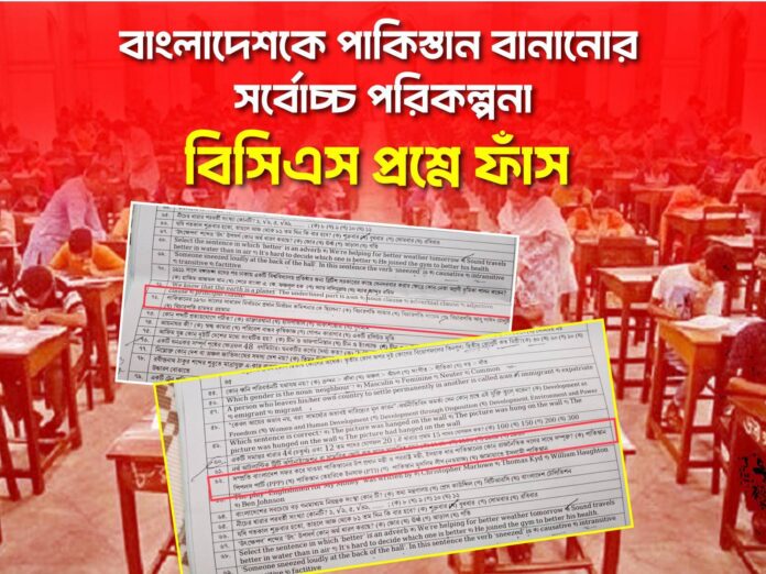 স্বাধীনতার ৫৪ বছর পর আবারও বাংলাদেশকে পাকিস্তান বানানোর ভয়াবহ ষড়যন্ত্র চলছে। আর এ পরিকল্পনার সর্বোচ্চ পরিকল্পনা এবার বিসিএস প্রশ্নপত্রেই ফাঁস হয়ে গেছে। শুক্রবার (১০ অক্টোবর) দেশজুড়ে ৪৯তম বিসিএস পরীক্ষা অনুষ্ঠিত হয়েছে। এবার এই বিসিএস প্রশ্নে এমন সব প্রশ্ন করা হয়েছে যেটি দেখে বোঝার উপায় এই এটি বাংলাদেশের প্রশ্ন না পাকিস্তানের।