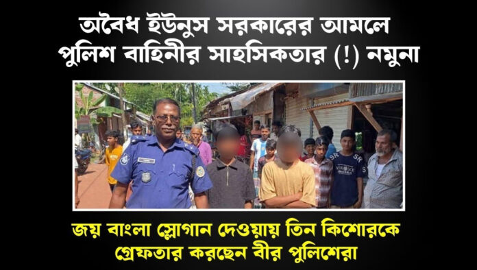 জয় বাংলা স্লোগান দেওয়ায় তিন কিশোরকে গ্রেফতার করছেন বীর পুলিশেরা