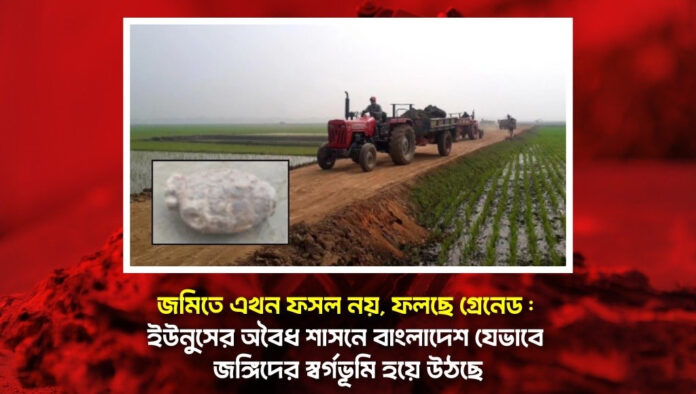 লালমনিরহাটের আদিতমারীতে কৃষক আব্দুল আজিজ তার জমিতে সেচের ড্রেন কাটতে গিয়ে কোদালে হ্যান্ড গ্রেনেড তুলে এনেছেন। এই খবরটা পড়ে আপনার কি মনে হচ্ছে এটা স্বাভাবিক? একজন কৃষক তার নিজের জমিতে কাজ করতে গিয়ে বিস্ফোরক পাবে, এটা কি কোনো সভ্য দেশের লক্ষণ? না, এটা একটা ব্যর্থ রাষ্ট্রের লক্ষণ। আর এই ব্যর্থতার জন্য দায়ী কে? সেই মুহাম্মদ ইউনুস এবং তার অবৈধ সরকার, যারা জুলাই মাসে রক্তাক্ত দাঙ্গার মাধ্যমে ক্ষমতা দখল করেছে বিদেশি টাকা, জঙ্গি সংগঠনের সাহায্য আর সামরিক বাহিনীর একাংশের মদদে।