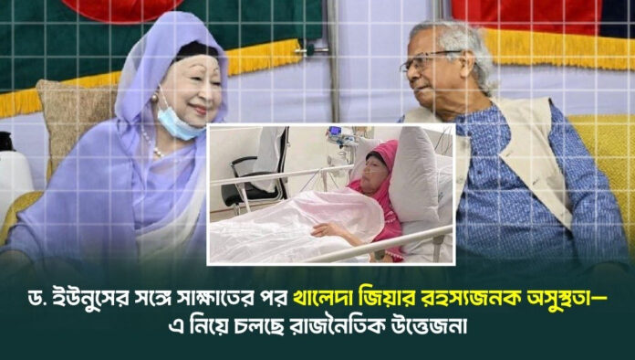 ড. ইউনুসের সঙ্গে সাক্ষাতের পর বেগম খালেদা জিয়ার হঠাৎ অসুস্থতা এখন দেশের রাজনীতিতে এক নতুন উত্তেজনার সৃষ্টি করেছে। দীর্ঘদিন ধরে শারীরিকভাবে দুর্বল থাকা সত্ত্বেও সাক্ষাতের পরপরই তার শারীরিক অবস্থার অবনতি হওয়ায় বিএনপি অঙ্গনে সন্দেহ, গুঞ্জন ও ক্ষোভ দ্রুত ছড়িয়ে পড়ছে। অনেকেই মনে করছেন—এটি নিছক একটি চিকিৎসাজনিত ঘটনা নয়; বরং সাক্ষাত-পরবর্তী মানসিক চাপ, রাজনৈতিক বার্তা বা পরিবেশগত কোনো অস্বাভাবিকতার প্রভাবও থাকতে পারে।