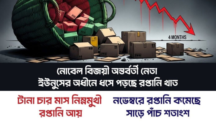 বাংলাদেশের রপ্তানি আয় টানা চতুর্থ মাস কমে যাওয়ার এই ভয়াবহ পরিসংখ্যান দেশের অর্থনীতির জন্য এক গভীর সংকটের ইঙ্গিত দিচ্ছে। নভেম্বরে রপ্তানি আয় দাঁড়িয়েছে মাত্র ৩ দশমিক ৮৯ বিলিয়ন ডলার, যা গত বছরের তুলনায় ৫ দশমিক ৫৪ শতাংশ কম। এই ধারাবাহিক পতন শুধু সংখ্যার খেলা নয়, এটি লাখো মানুষের জীবিকা আর দেশের ভবিষ্যতের সাথে জড়িত একটি বাস্তবতা।