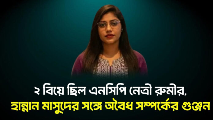 এদিকে, বিভিন্ন সূত্র থেকে জানা যাচ্ছে যে, রুমীর সঙ্গে জাতীয় নাগরিক পার্টির (এনসিপি) জ্যেষ্ঠ যুগ্ম মুখ্য সমন্বয়ক এবং রাজনৈতিক পর্ষদের সদস্য আবদুল হান্নান মাসুদের একটি অবৈধ সম্পর্ক ছিল। এই সম্পর্ক নিয়ে চারদিকে গুঞ্জন চলছে দীর্ঘদিন ধরে।
