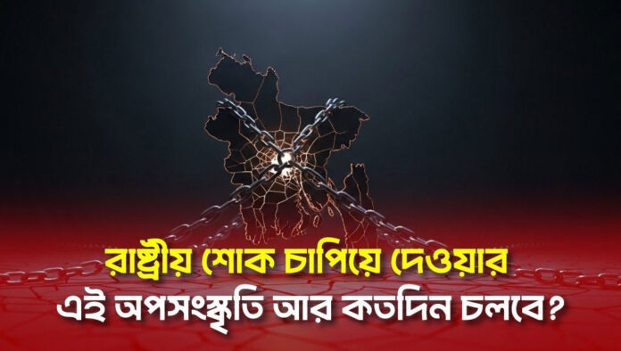 যে সরকার ২০২৪ সালের জুলাইয়ে রাজপথে রক্তগঙ্গা বইয়ে ক্ষমতায় এসেছে, যারা গণতান্ত্রিকভাবে নির্বাচিত সরকারকে উৎখাত করেছে, তারা এখন মানুষকে শেখাচ্ছে কীভাবে শোক পালন করতে হয়। একজন রাজনৈতিক ব্যক্তিত্বের মৃত্যুতে তিনদিনের শোক চাপিয়ে দেওয়া হচ্ছে জোরপূর্বক। কোন যুক্তিতে?